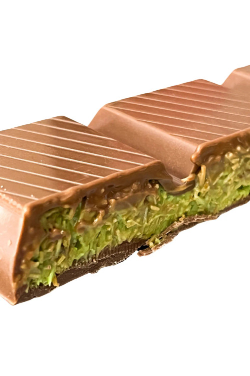 از پسته طبیعی که داخل شکلات استفاده شده است لذیذ بودن این شکلات را دوچندان کرده است.